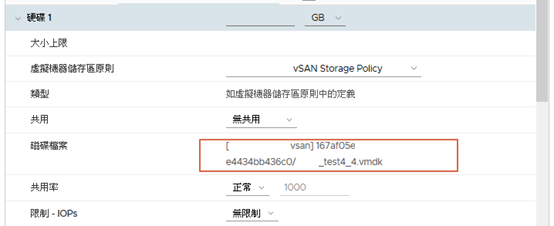 路徑:/vmfs/volumes/{vSAN storage名稱}/{VM主機名稱}